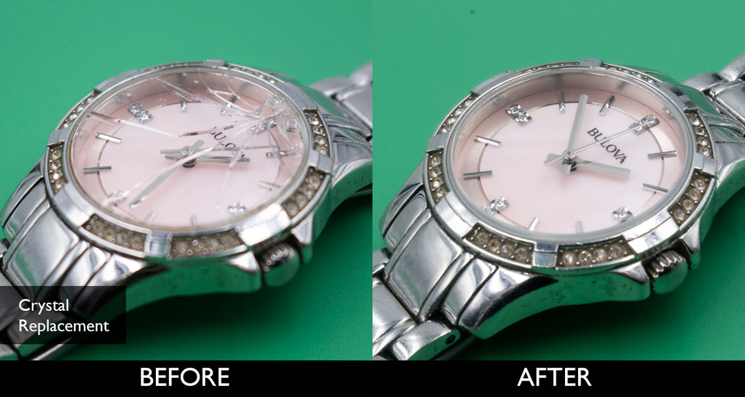 Before and After Watch Crystal Replacement for Bulova Pink Quartz Watch 06-03-2021
