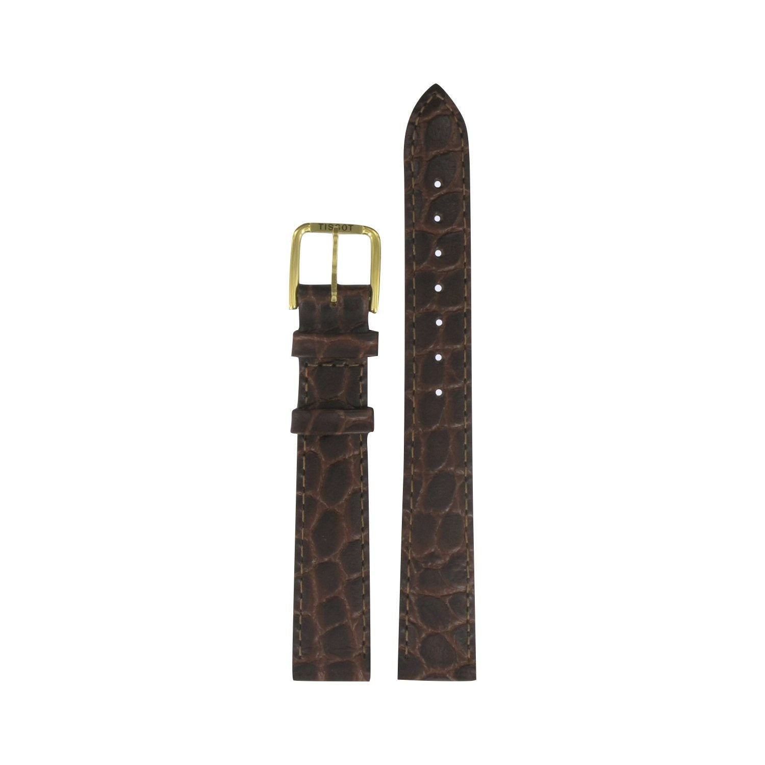 If your watch takes a straight end strap, you can order the original Tissot strap or a generic strap will work. The width of the strap will correspond to the distance between the inside of the lugs on the watch head.
