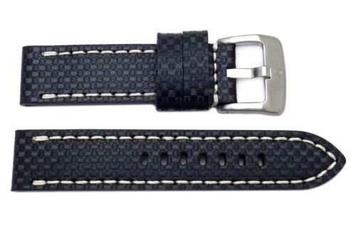 Total Watch Repair offers a full line of premium quality ALFA replacement watch bands. The strap features genuine carbon fiber leather, anti-allergic, matte finish, thick padded, regular length, Panerai-style design, an oversized stainless steel buckle, and white contrasting stitching around band for durability. Regular Length.