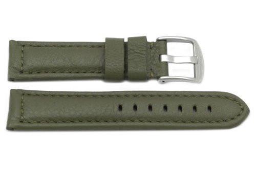 Genuine Heavy Padded Leather Sport Olive Long Watch Strap