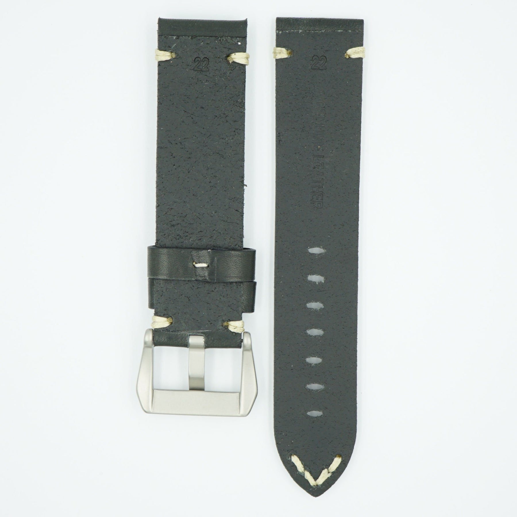 Vintage Heavy Black Leather Watch Strap