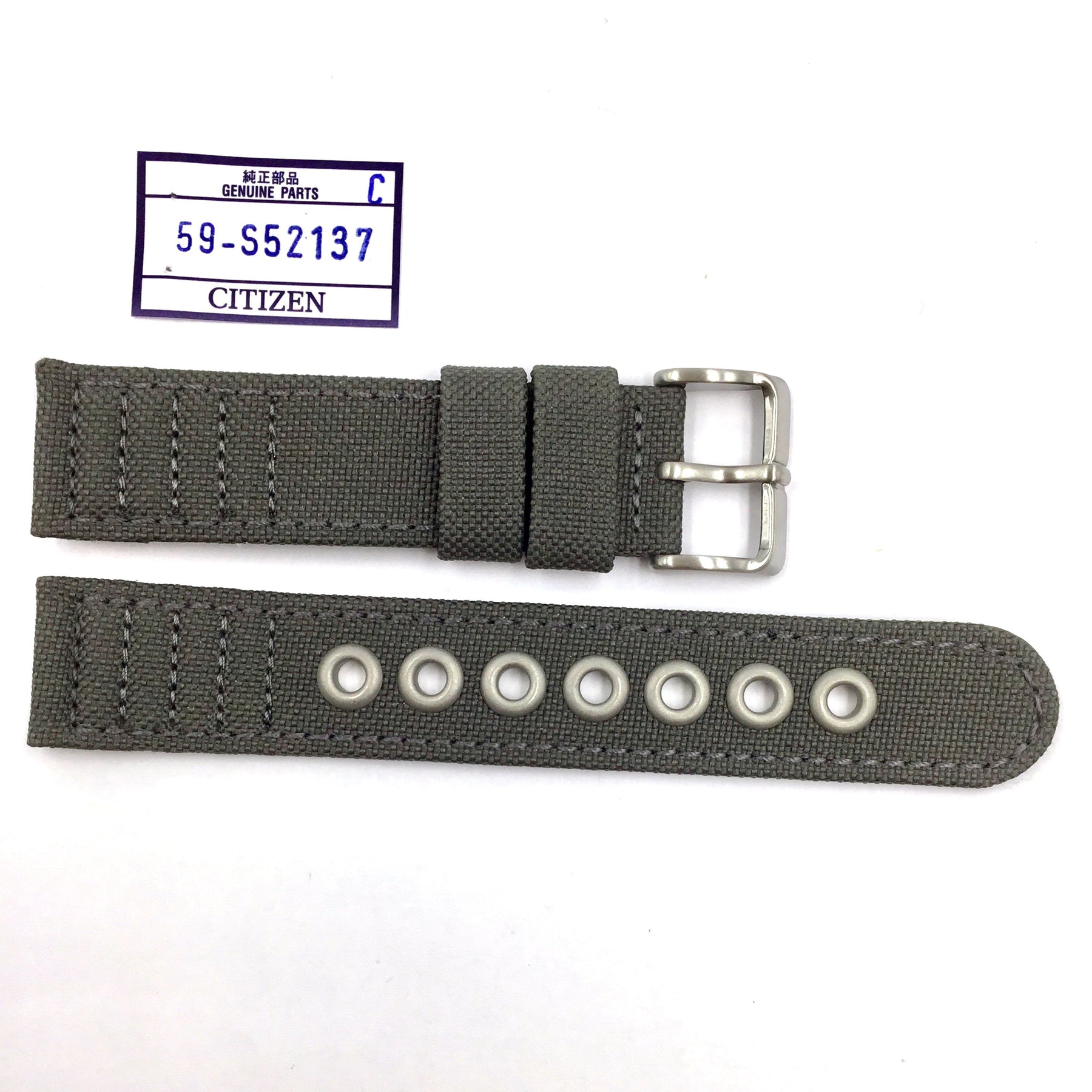 Citizen 59-S52137 Khaki Textile-Nylon Watch Strap, Band Material Nylon, Band Color Khaki, Band Length Regular, Buckle Silver-Tone Stainless Steel, installs with spring bars