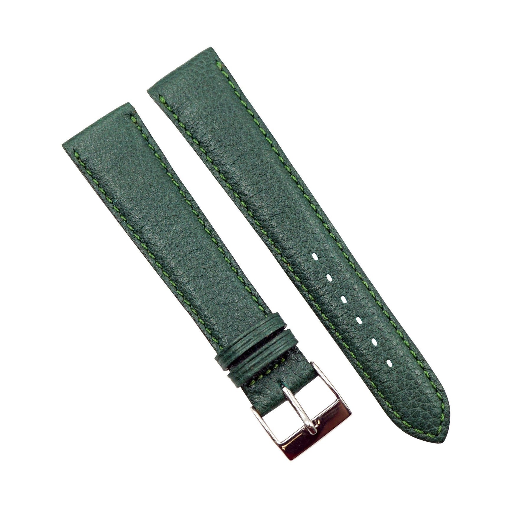 We carry handcrafted replacement watch straps and watch bands sourced from the very finest manufacturers around the world. Our watch straps primarily come from European craftspeople in Italy, France and Switzerland. Multiple tapers, lengths and colors of watch straps are available in many styles. We use a durable waxed thread to stitch together the strap, and add a polished 316 surgical stainless steel buckle to complete the band. All our bands include back lining and are made of genuine full grain leather. Our bands are of the highest quality which means we do not use split or bonded leather. This ensures that our bands do not crack after continuous wear. All of our bands have their keepers (moveable loops) both glued and stitched to reinforce their strength. We use only the best quality of stainless steel buckles.- TOP GRAIN & IDEAL COMFORT: Genuine Crushed Soft Leather Handmade in France with 316 stainless steel hypoallergenic buckle. Lined with soft neutral colored Nubuck. Semi-padded with matching stitch