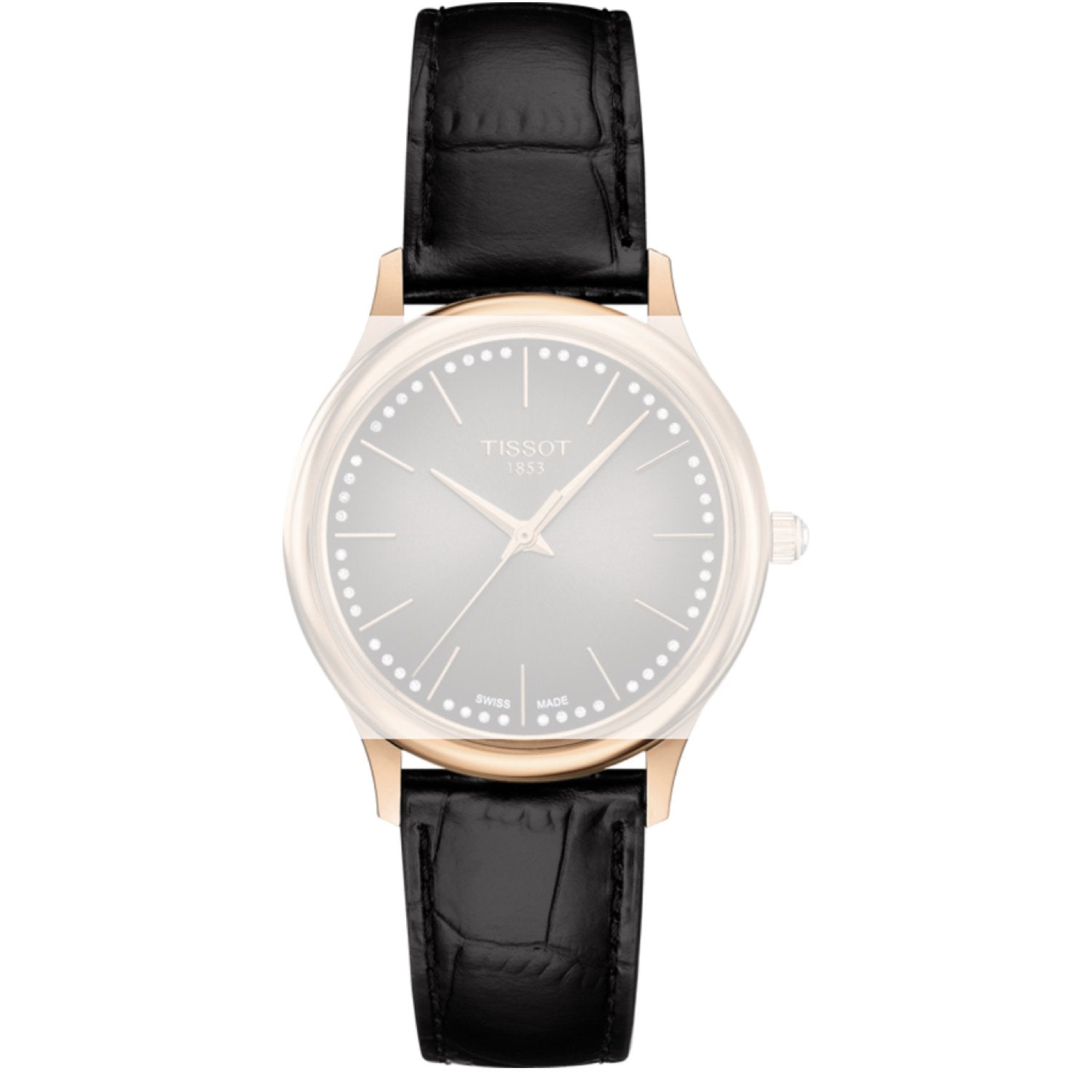 If your watch takes a straight end strap, you can order the original Tissot strap or a generic strap will work. The width of the strap will correspond to the distance between the inside of the lugs on the watch head.
