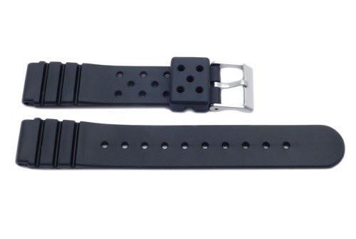 This Black resin watch strap is the perfect replacement watchband for your Casio watch. Made by Bandenba, the strap is designed to fit nearly any timepiece with pins regardless of brand. The sporty band features a matte finish, a silver tone stainless steel buckle, and water resistant materials. Made with thicker construction than most plastic straps, this item also includes a durable textured bottom. Regular length.
