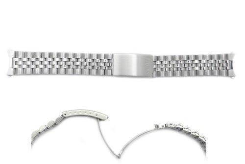Total watch repair offers a full line of premium quality Genuine Citizen replacement watch bands. This silver tone watch bracelet features a brushed and polished finish and water resistance capabilities. The clasp provides a secure fit and contains an official Citizen engraved logo for authenticity..