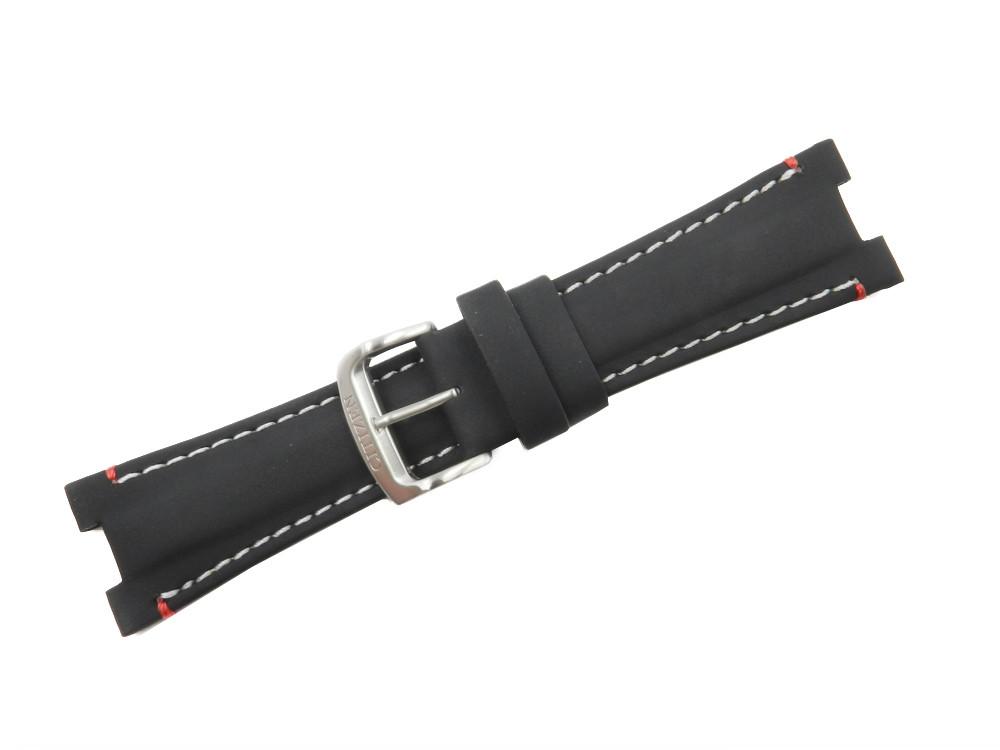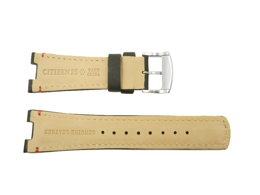 Citizen manufactured this genuine leather watch band with medium padding construction and contrast stitching. This watch strap features a durable silver gold tone stainless steel buckle. All of our Citizen bands are 100% Authentic. Size: 25mm-11mm. Length: Regular.