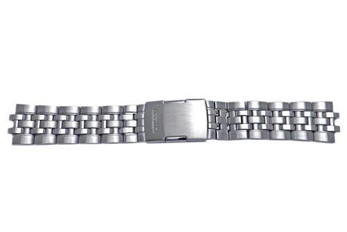 Citizen manufactured this Stainless Steel Silver Tone replacement watch band. The watch strap itself features a stainless steel bracelet, a brushed and polished finish, water resistance, and a push button fold-over clasp closure mechanism for stability. Regular Length. All of our Citizen bands are 100% Authentic.