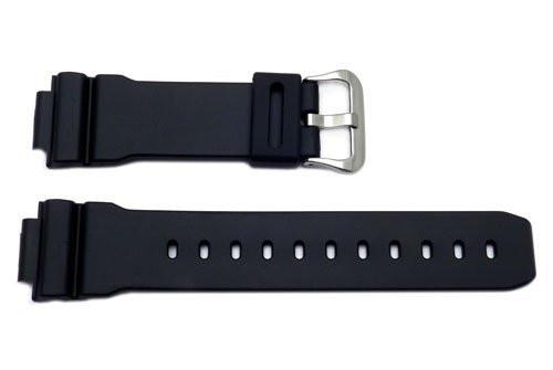 This Genuine Factory CASIO Black Resin 26/16mm watch band features a Silver Tone Buckle, matte finish, and water resistant. The Casio watch strap is created from a durable and thick resin construction. The strap measures 26mm that integrates to the case-back at 16mm. Regular Length. Substitute Item# 10025152