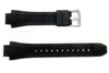This Genuine Casio Black Resin 24/15mm watch band features a silver tone stainless steel buckle, a matte finish, and water resistance. The Casio strap is created from a durable and thick resin construction. The strap measures 24mm that integrates to the caseback at 15mm. Regular Length.