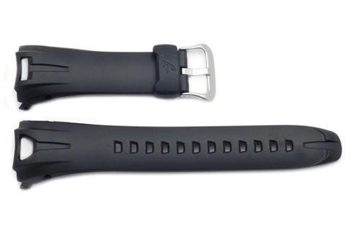 This Genuine Casio Black Resin watch band features a stainless steel buckle, a matte finish, and water resistance. The Casio strap is created from a durable and thick resin construction. Regular Length.