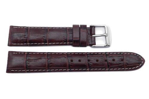 Genuine Leather Alligator Grain Brown with White Stitching Semi-Gloss Watch Strap