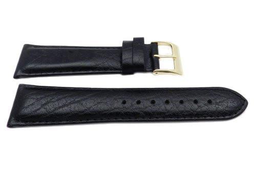 This Genuine Leather Textured Black Semi-Gloss watch strap is manufactured by New Life. The band itself features matching stitching, medium padding, and a semi-gloss finish complimenting the elegant yet simple design of the watch band.
