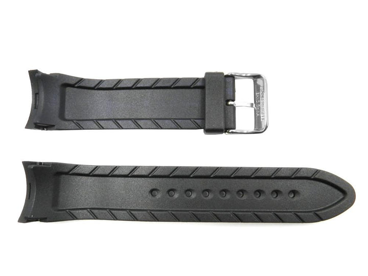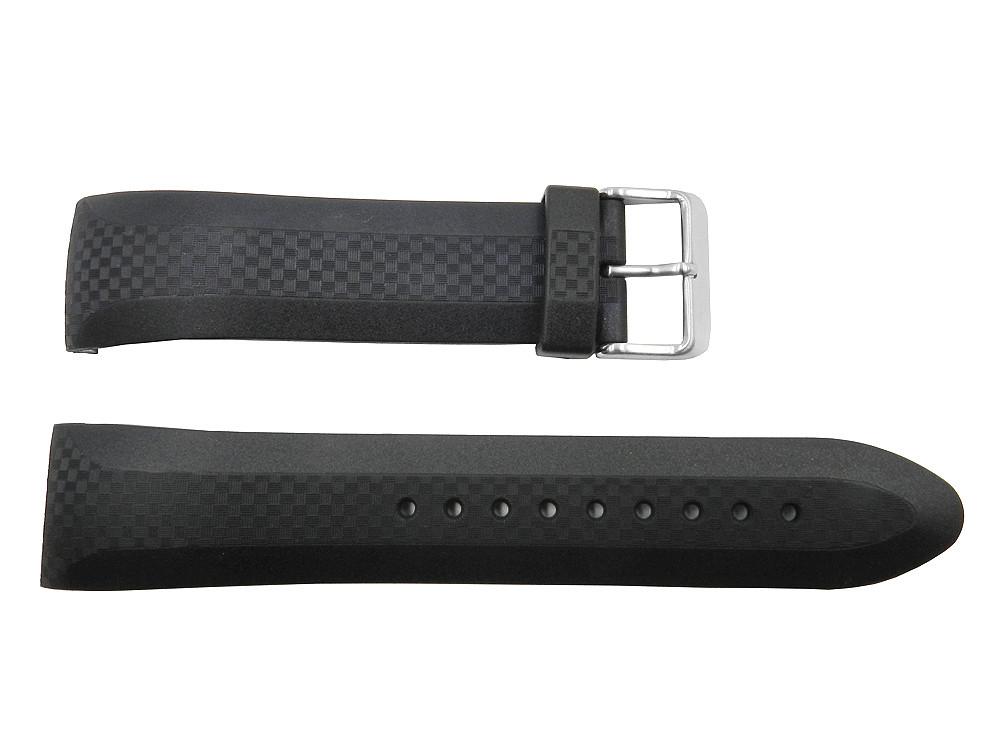 This watch strap is manufactured by Pulsar. The watch band comes in black and sports a silver tone buckle. The sport design is tough enough to handle all of your urban and outdoor adventures especially with the durable rubber construction. Color Black. Size 24mm. Regular Length.