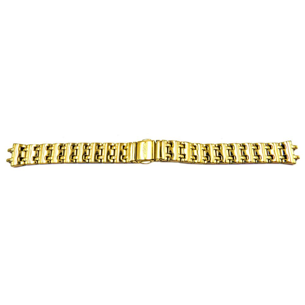 Seiko made this sporty replacement watch bracelet for a ladies timepiece. This dual tone watch strap features an all around brushed finish with polished gold tone accent in each link. The Fold Over clasp with push button is engraved with 'SEIKO' for authenticity. Regular length.