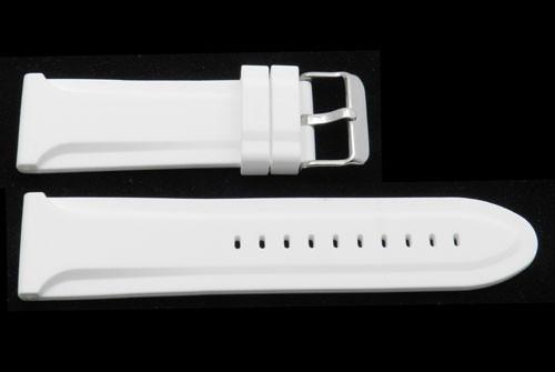 This watch band by Bandino is designed to fit most watches regardless of brand. The strap is made of soft, yet durable genuine silicone. The silicone material features ultra thick construction for extra durability. This sporty strap features no padding for added flexibility and is available in different vivid colors. Strap is best suited for large watches and comes in sizes 26mm and 28mm. Regular length.