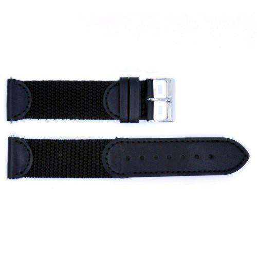 Black nylon and leather combo band . Size 16mm.COMES with a generic silver buckle.