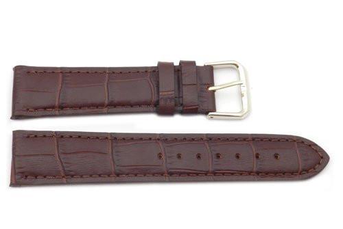 Genuine Textured Leather Square Crocodile Grain Brown Watch Band