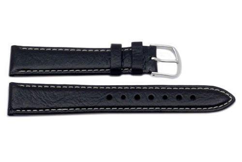 Genuine Textured Semi-Gloss Leather Black Watch Band