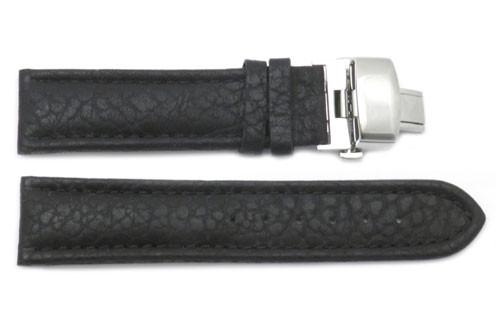 This fine textured leather Wyoming buffalo watch band has a matte finish and soft, nubuck lining, which enhances the elegance factor. The basic strap features medium padding and matching stitching. The silver tone butterfly clasp allows for a streamline appearance with a secure fit. Manufactured by Banda, this universal replacement band comes in sizes 18mm, 20mm, 22mm, and 24mm. Regular Length.