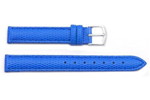 Designed by Hadley Roma, this blue lizard grain watch band features a semi-gloss finish, matching stitching and light padding for that softer feel on your wrist. This watch band is also water resistant. Color blue. Regular Length.