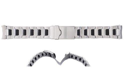 From Hadley Roma comes this Stainless Steel and Black Sport Metal watch strap. The watch strap features a fold over clasp with a safety lock and straight and curved ends. Lastly, it also sports solid stainless steel links with a bit of black and a brushed and polished finish.