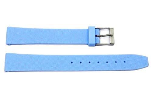 Bandenba manufactured this universal replacement band to fit nearly any timepiece regardless of brand. This light blue PVC watch strap features a formal style with a semi-gloss finish and water resistant materials. Without padding or stitching, this ultra lightweight band maintains a sleek, streamline appearance.The strap comes with your choice of a silver or gold tone buckle. Regular length.