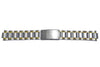 This genuine Pulsar stainless steel bracelet features an all around brushed finish with gold tone polished dual rails. The watch strap measures 20mm and the clasp mechanism is a fold over clasp. It also features an engraved 'PULSAR' for authenticity. Regular length.