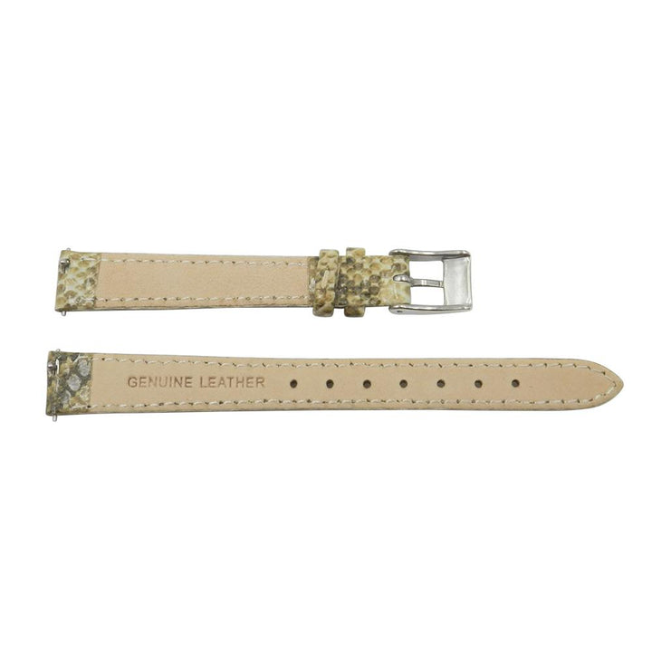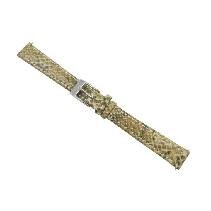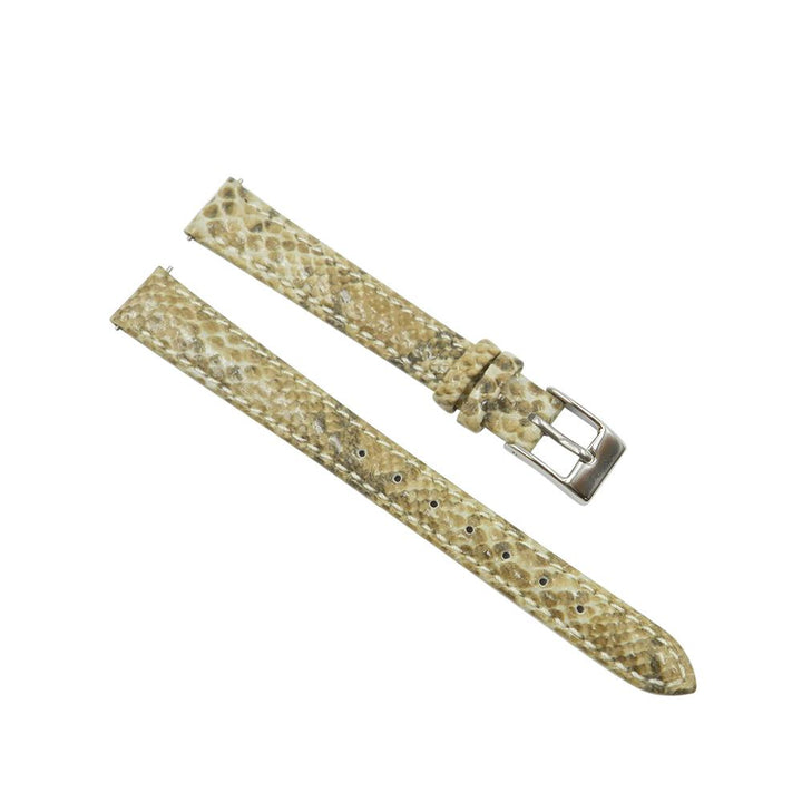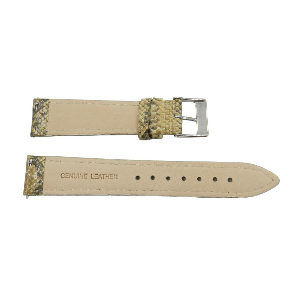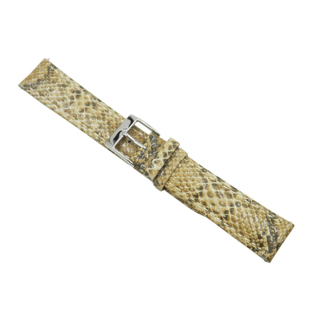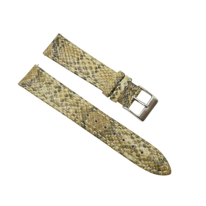 This python exotic leather watch strap is an ideal replacement watch band for any classic or modern watch piece. It features a textured exterior, matching stitching, stainless steel buckle, and medium padding construction for extra durability and comfort. Color: Tan. Regular length.Product Specifications