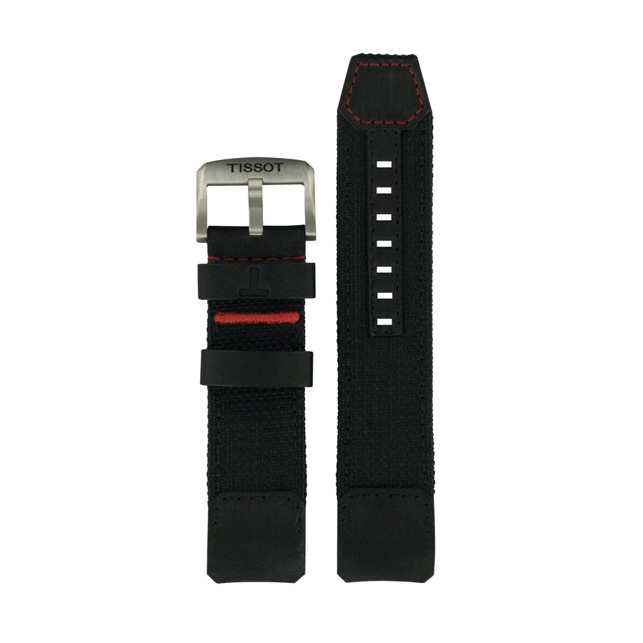 If your watch takes a straight end strap, you can order the original Tissot strap or a generic strap will work. The width of the strap will correspond to the distance between the inside of the lugs on the watch head.